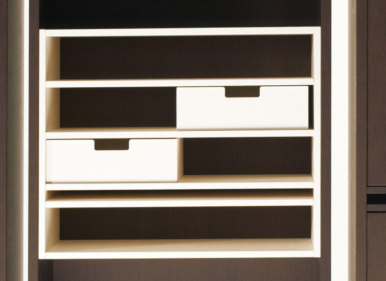 Cassina's Rialto consists of carefully selected materials, guaranteeing that every Rialto made meets the highest quality standards. The cabinet's structure consists of 20 mm and 12 mm thick wooden agglomerates overlaid and edged with 6 mm of preformed wood or painted matte finish. The distinct central unit also comes in 12 mm thick wooden agglomerate panels, embellished for lacquering and with a 1mm PVC edge. The drawers are made of MDF, and the doors are of wood agglomerate, solid wood, or clear, tempered glass. These materials ensure the quality found within the Cassina Rialto Cabinet.