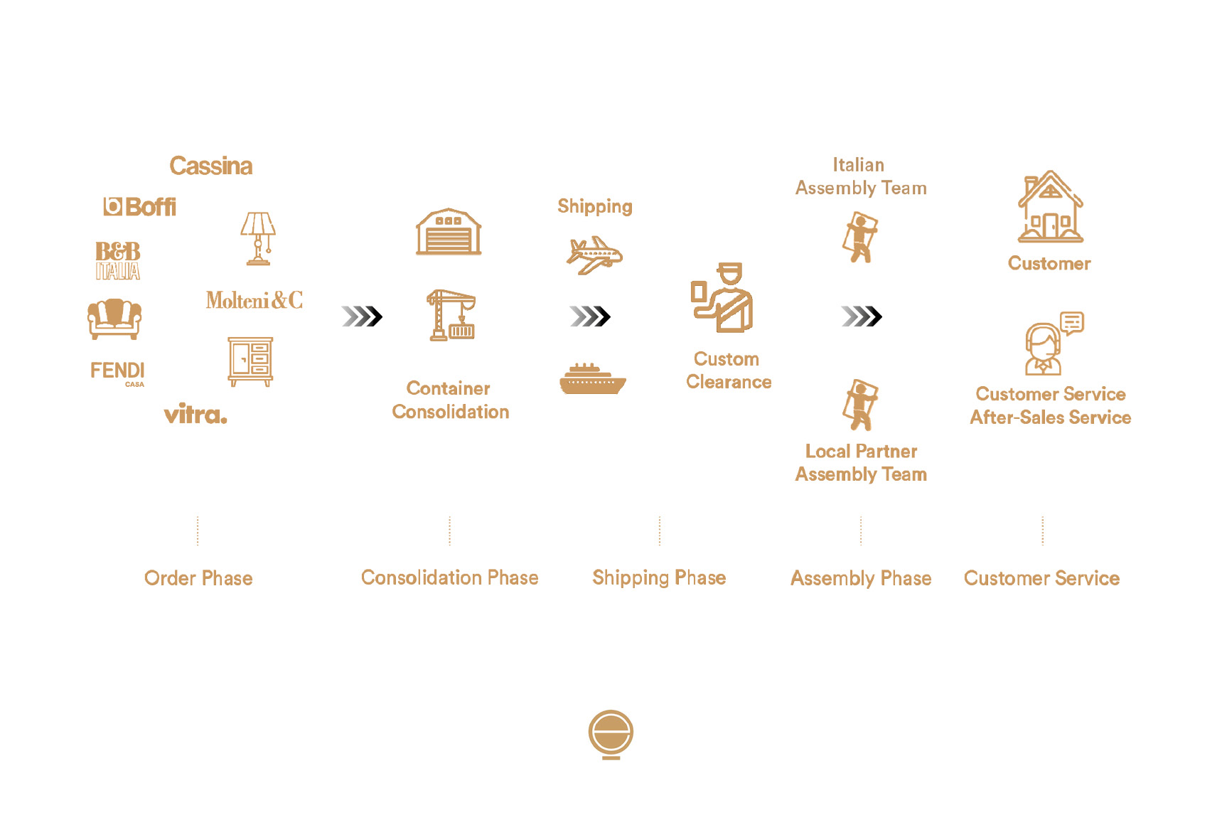 Our team will make sure that everything runs smoothly: from the consolidation in our warehouse of all the selected pieces to the container loading, an activity that requires special attention to prevent any damage during transport. We will respect the set dates, delivering all the products within the deadline.