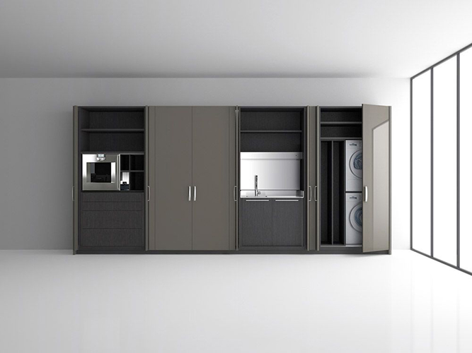 There are models such as Hide by Boffi, one of the best Italian furniture brands, that redefine the space thanks to these clever systems, creating a perfectly functional and fully-equipped retractable kitchen. Tivali by Dada is also a kitchen box with large sliding doors that appear and disappear when needed with a light, fluid movement. A column can be open or closed, equipped with a rotating unit to take maximum advantage of corner modules or be an operating system. Each solution responds to the need to organize spaces and appliances in the kitchen.