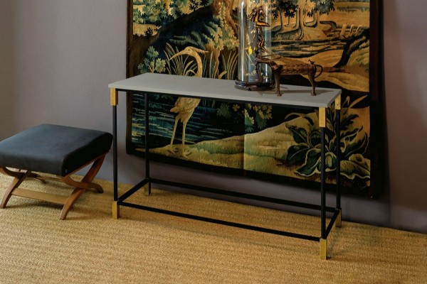 Designed by Bernhardt & Vella, the Arflex Match uses simple materials and methods to complete its form. The main design feature of the console table consists of its brass joints. These joints secure the metal framework to its marble worktop, becoming a precious and decorative element that bolsters the entire console table. The construction of the item dignifies the simplistic essence of the table's constitution. The clean lines of the Arflex Match Console Table are the source of its timeless appearance, and the materials used for its production provide a classical element to its form.
