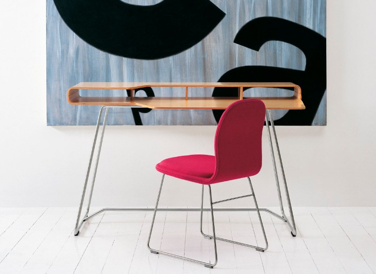 The Loop Desk is a beautiful item made for domestic use, based on the integration of a workspace and storage, an idea that came to the designers when they were still students. This line of thought is prevalent upon viewing this superb object. Its top is made of bent and shaped birch plywood and the base is composed of stainless steel. The Loop Desk by Cappellini's two-layer work surface houses the storage compartments in between them. This feature allows for a multitude of uses both decorative and utilitarian, perfect for any home office or study area.