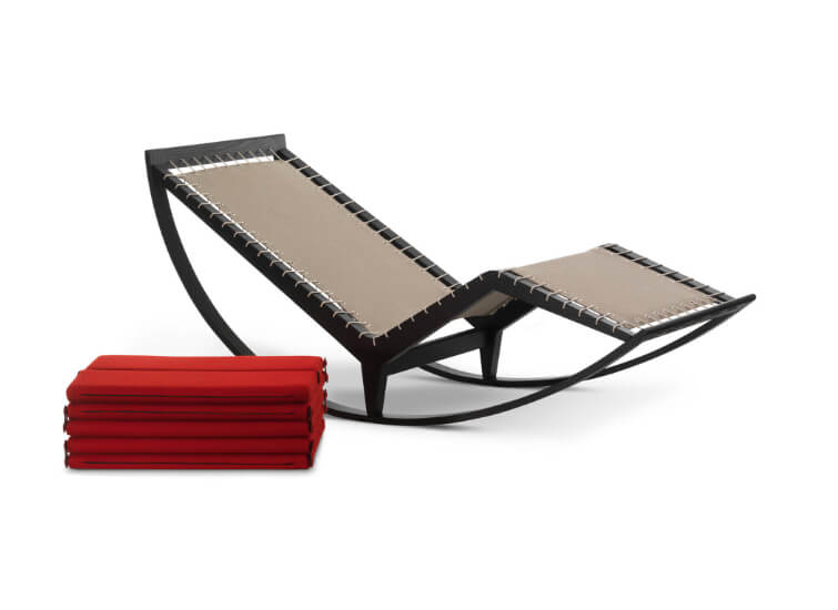 The Cassina Canapo was initially designed in 1945. It was then reproduced in 2010. It is a chaise longue with a rocking support frame in solid ashwood. The supporting fabric serves as the chaise lounge's backrest and seat support. It is attached to the frame with cords, producing a striking motif along the frame's sides. Its polyurethane cushioning is divided into modules and can fold over itself. These elements combine to give us the Cassina Canapo Daybed, a piece of furniture that will surely add value to your interiors without difficulty.