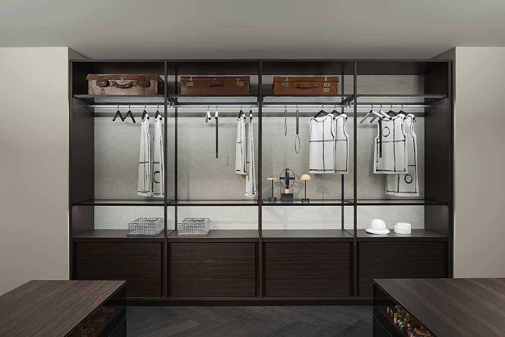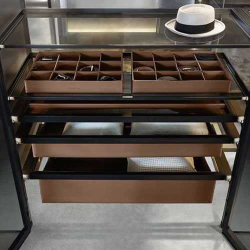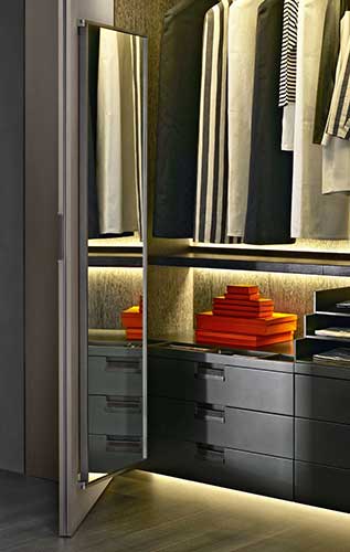 In the planning of a luxury wardrobe both practicality and design have the same importance, because it has to be configured according to specified requirements. Porro furniture, one of the leading Italian companies in the production of luxury wardrobes, offers in its catalogues a wide variety of accessories, which configure the wardrobe or walk-in closet.