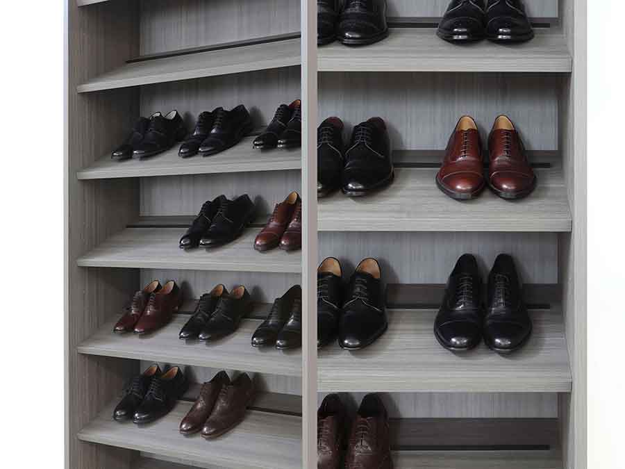 The collection allows you to customize the interior by combining the accessories. Hanging chests of drawers and sliding storage trays to be composed, together with sloping shoe shelves. But also storage compartments and drawers equipped with dividers.