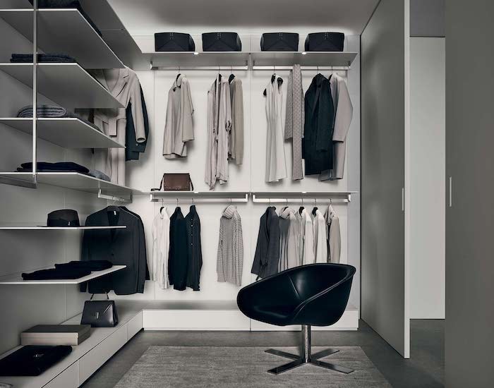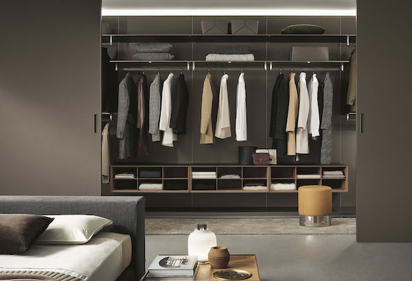 The main feature of Rimadesio walk-in closet is the detailed technological study adopted in the design of each element: the extremely sleek sliding doors, shelves and display cases create an essential system in the lines and minimal in the shapes.