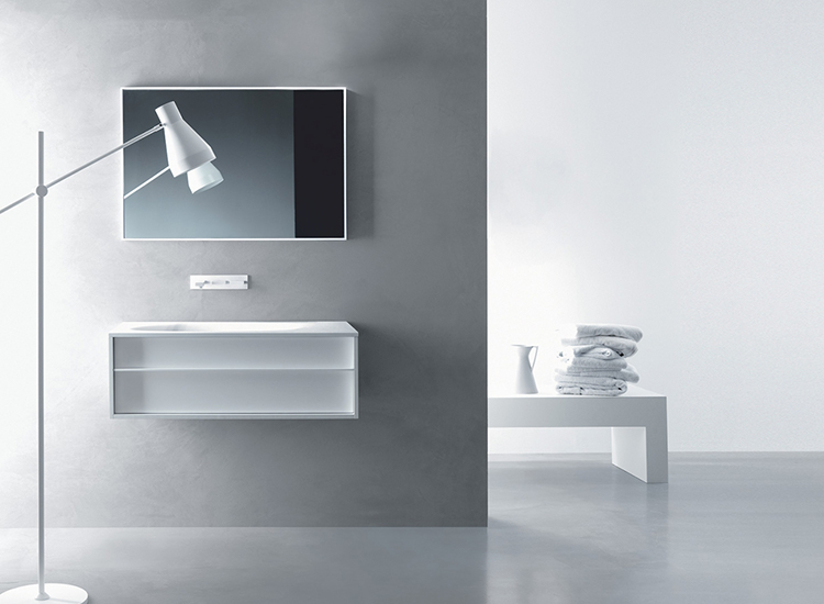 Just like its minimal profile, the Falper Shape Bathroom Vanity relies on simple materials to bring out its exquisite profile. Its entirety consists of MDF, Idropan, and birch plywood furniture on a metallic frame. The Shape also utilizes Legrabox drawers with stabilization systems and a built-in soft-close mechanism. These materials go through a meticulous process to complete the Shape's configuration. Polished but not exaggerated, this bathroom system manages to exist within these qualities, creating a visual profile that highlights harmony between luxury and modesty. The Falper Shape embodies the balance between rigorous and organic elements, function and emotion.