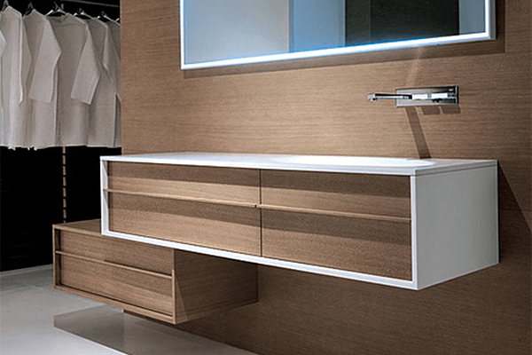 Several finishing options are available for the Falper Shape Bathroom Vanity. This product makes use of these finishing options for the base of this bathroom vanity system. There are twenty-three colour options ready for your choosing: these choices apply to the base components. Wooden selections are available for all base components as well. The internal finish for the drawers and the drawer mechanisms themselves come in Falper's matte white finish. These finishing selections give Falper's Shape the details needed to integrate itself into your bathroom's design scheme.