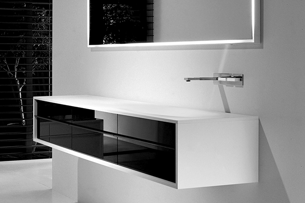 The Falper Shape is a bathroom vanity that expertly utilizes its linear profile to accentuate any washroom setting. It has four widths in 93, 123, 153, and 183 cm, a height of 33 cm, and a standard depth of 48 cm. The main draw of this restroom implement however, is its seemingly organic-looking Biobased Cristalplant washbasins, which can either be single or double. You may configure the washbasin to be built-in with its base unit, or you may choose to separate the base cabinet unit from the wash basin itself, creating two different components that make up one restroom system.