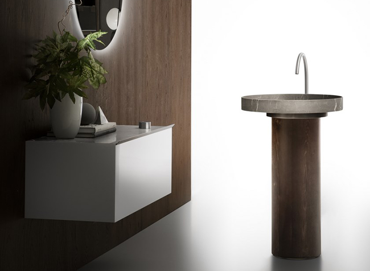 Sanitaryware like the Falper Eccentrico Freestanding Basin comes in a wide array of finishes so that you may achieve your desired look without difficulty. There are six marble choices for your washbasin, one of which is the Cristalplant® biobased material. The freestanding base unit has eleven available wood finishes. There are also finishes available for the metal towel ring in Stainless steel titanium, Brushed Copper, Brushed Brass, Onyx, and Satin stainless steel. Any combination of these selections will result in a beautiful freestanding washbasin for your bathroom.
