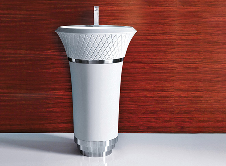 Designed by Michael Schmidt, the George Sanitaryware meets all your requirements for an excellent free-standing washbasin. Its washbasin column is made from Ceramilux and is further detailed with a wood or marble covering. The details within the sink merit attention as its beautiful silhouette represents the refinement of the male form. The "torso" of Falper's George can be adorned according to your specifications. This stalwart product also decorates its feet with material as well, providing an additional touch of finesse to the product.