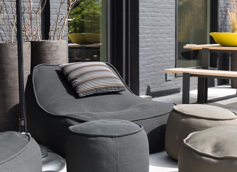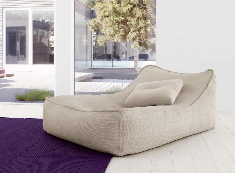 The Paola Lenti Float series includes an easy chair, chaise lounge, and sofa. The different options maintain their shape with a polyester fabric casing padded polystyrene.