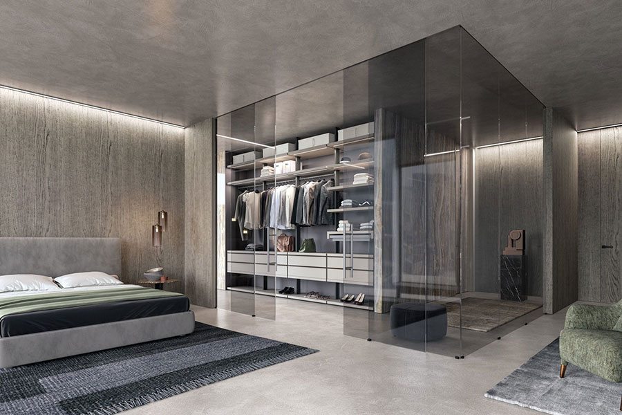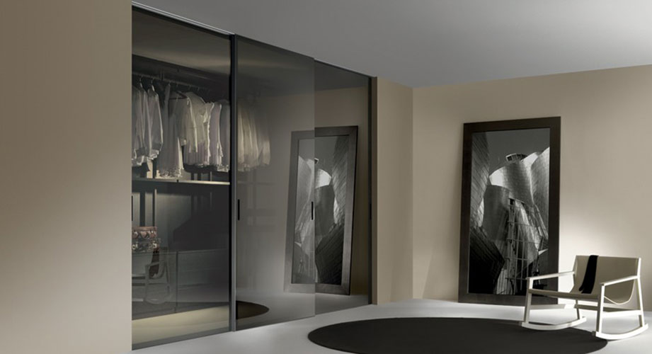 Rimadesio also produces sliding doors for walk-in closets such as Graphis light. It is a solution to furnish the sleeping area and perfect to integrate with Graphis plus sliding doors, creating a sleek, uniform space. Rimadesio, an Italian company dating back to1956, is famous for its minimal solutions in glass and aluminum.