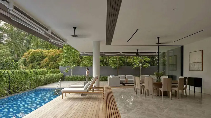 The clients  requested to follow the tenets of the Good Class Bungalow category, which is a much sought-after housing type in Singapore that requires ownership of a large plot of land and provides a range of benefits and functional spaces typical of local luxury homes.