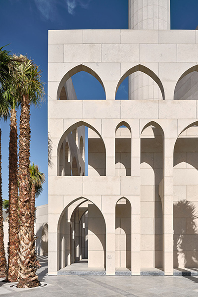 Classical Islamic architectural features are harmonized with the functional aspects of modern design, showcasing a deep love for their cultural heritage and their mastery in managing natural light and the shadows cast by white geometrical forms.