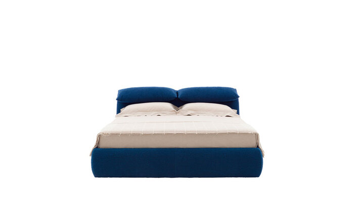 Bamboletto is an upholstered bed with a graceful design and soft, delicate shapes and is available in many finishes, both fabric and leather.