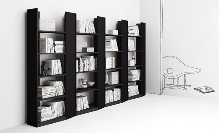 If we think of the Vertigo free-standing bookcase, it is impossible not to appreciate its fragmented line and this continuous play of recesses and depths, which give its design an extraordinary dynamism, clear and functional.