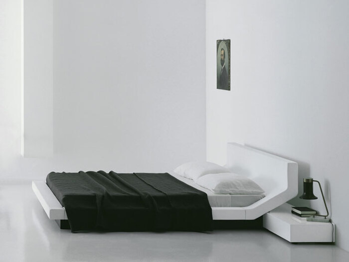 Just think, for example, of the Lipla bed, whose design is so dry and synthetic that it looks futuristic; it would be a perfect piece of furniture for the set of a Stanley Kubrick film.