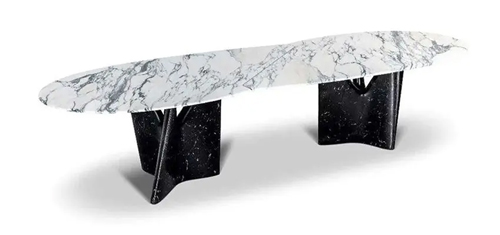 For its Pleasures Collection, Poltrona Frau presented a limited edition of the marble table-sculpture “Infinitamente” by Roberto Lazzeroni.