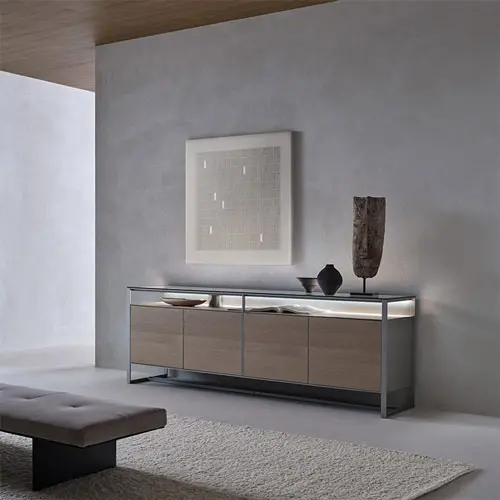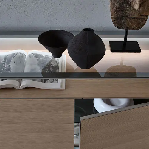 A philosophy that can be appreciated in each individual piece of furniture, splendid objects of art such as SATURNO, the modular coffee table designed by Giuseppe Viganò, which reveals a concept of minimal aesthetics, where synthesis produces Poiesis, or innovation.