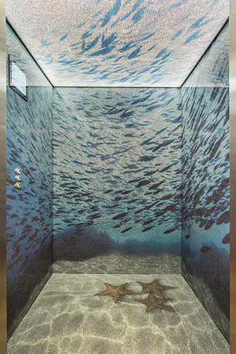 Not only furniture but also decor can make a room unique, like the arresting aquarium made with Mutaforma micromosaics for My Dream, the 38th largest yacht in the world, custom-designed by Studio CQS. The decor is an expression of originality for this nautical jewel. It was made with micro tiles of composite material, which allow for the creation of an endless number of designs.