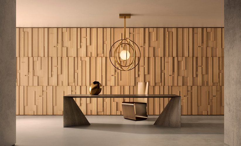 One example can be found in the proposals of Emmemobili, a historic Italian company, which since its inception has dedicated itself to the production of high-quality custom-made furniture and multilayer panels. Today the company creates unique products, applying its natural inclination for sartorial design. As a standard bearer in the field of Italian Luxury surfaces, Emmemobili has collaborated with leading names in Italian design, such as Ferruccio Laviani, who designed Modular Boiserie for the company, a creation with which to build evocative and dynamic wall surfaces punctuated by 3D volumes.