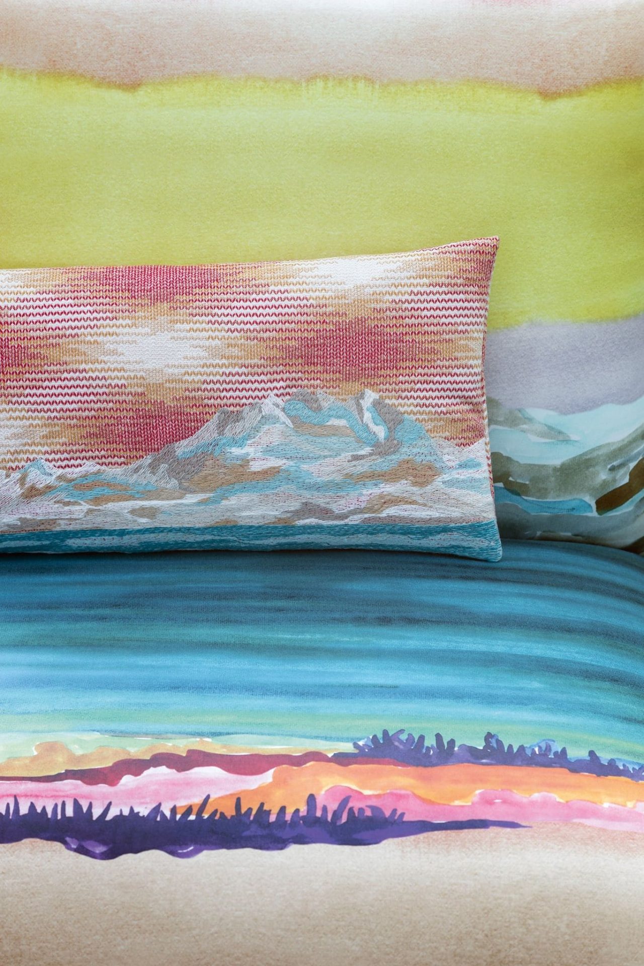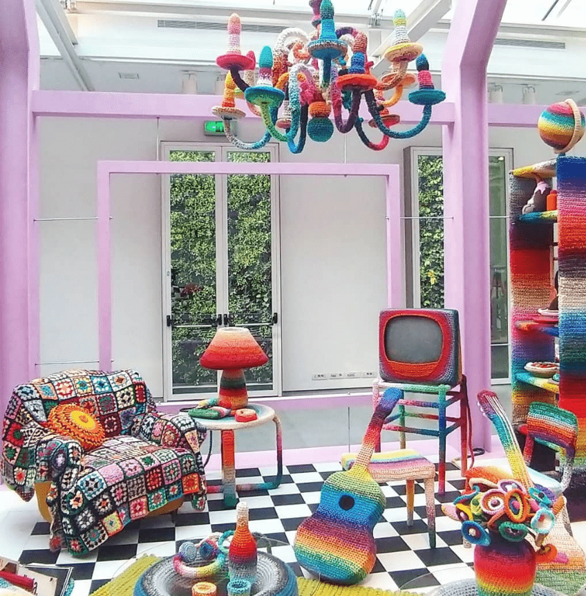 Missoni Home’s 2019 collections includes Panoramas, which was portrayed through interior scenes at Salone del Mobile. Nature and texture proved to be the great influences here, and color of course. The Missoni Home showroom presented Stripes Mosaic, while at their showroom in Brera, the brand made Home Sweet Home, an entire open-sky house decked out with Missoni knit objects and materials decorating each element of living spaces.