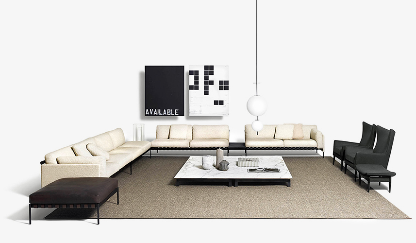 Among the most recent products, there are highly sought-after collections that make attention to detail and research of raw materials a distinctive aspect. Like Yak by Lucidi Pevere, a sofa that can be appreciated from any position. The solid wood structure acts as a loop for the continuous strip of leather, which in turn forms the back and arms. This creates an interesting primitive and artisanal effect that characterizes the product. The backrest is also a characterizing element for Étiquette by GamFratesi. In this case, the details of the backrest are enhanced by a metal structure, finished with leather straps and a wooden bar that add an unusual accent to the minimalist line of the sofa.