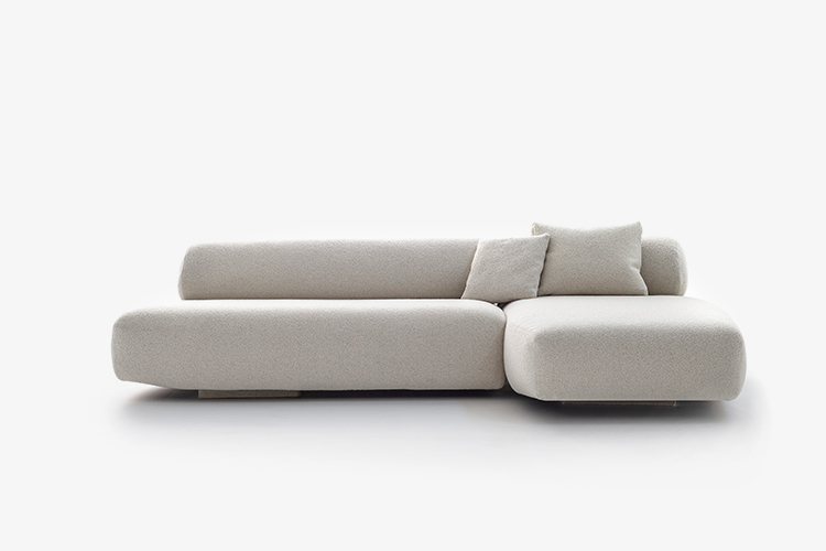 On the subject of contemporary Italian sofas, among Cassina’s new releases, we find Dress-Up! by Rodolfo Dordoni and Cotone by Ronan & Erwan Bouroullec. Dress-Up! is a sofa defined by details drawn from the art of dressmaking; for example, the stitching around the back/armrests creating an elegant crease on both the front and back, from which a zipper runs down to the sofa’s base, as with a dress. Its appearance is further enriched by a gross-grain profile around the seat cushions, available in black, white, gray, and milky white.