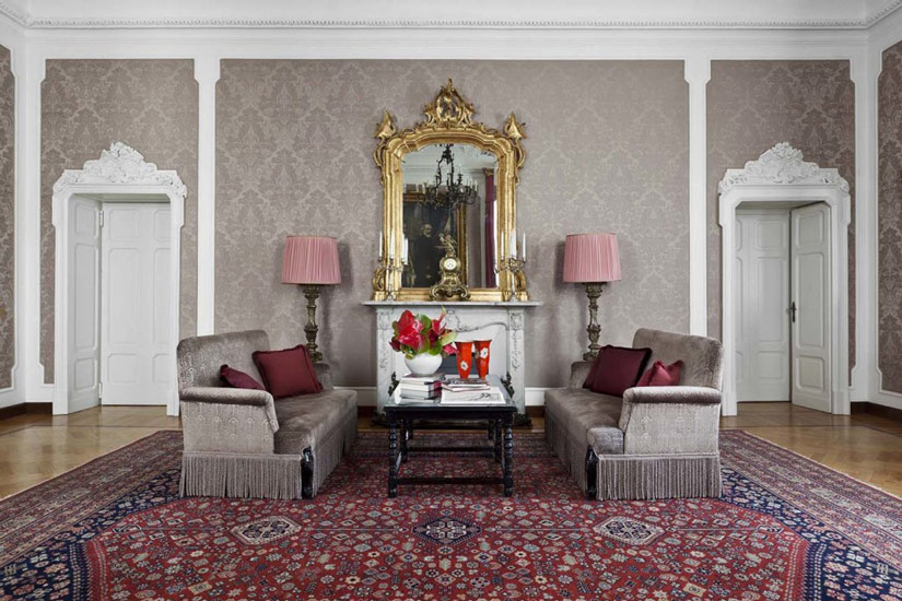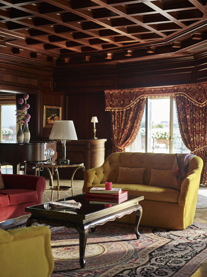Basu was inspired by Milan’s La Scala Opera house when designing his series of Principe Suites, which feature theatrical details and rich fabrics. In the Imperial Suite, Dell’Anna has kept the original wood paneling adding residential touches like an abundance of seating.
