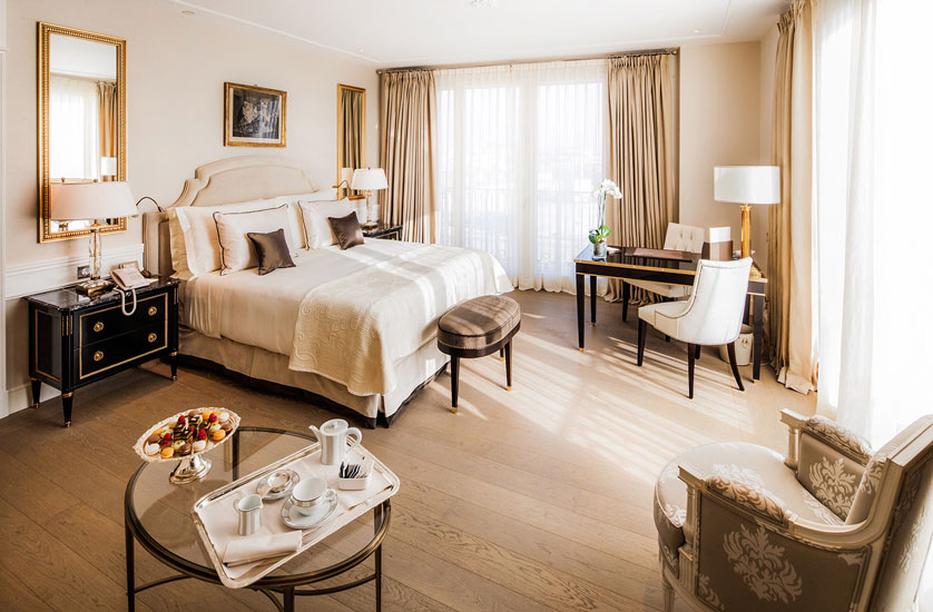 Milanese taste meets Parisian finesse at the Palazzo Parigi Hotel & Grand Spa located in the heart of Milan, in Corso di Porta Nuova. The hotel’s meticulous detail is the work of architect Paola Giambelli, who collaborated with world-renowned French interior designer, Pierre Yves Rochon. Upon entry, a wrought-iron skylight illuminates the hotel’s lobby, an elegant space in typical neoclassical Milanese style featuring a venetian mosaic flooring, hand-decorated ceilings, and a majestic staircase decorated in peach blossom marble and calcutta gold.