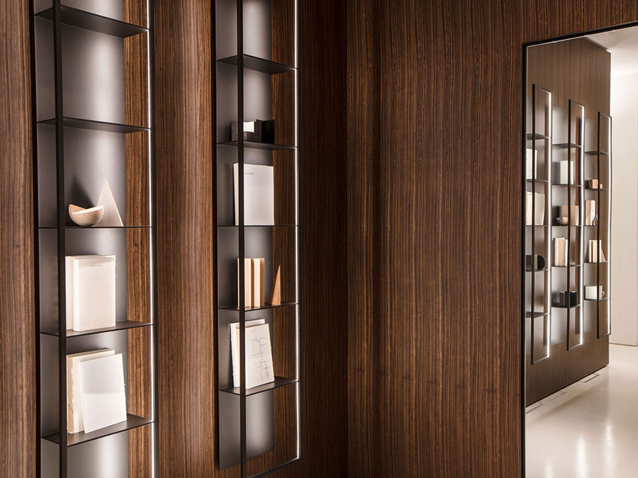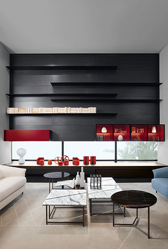 The versatility of Porro Italian furniture also allows you to furnish the living area and the office. With System, wall units and partitions can be custom-designed. Among the latest products is Hanging, a system that allows you to create a configurable suspension wall system.