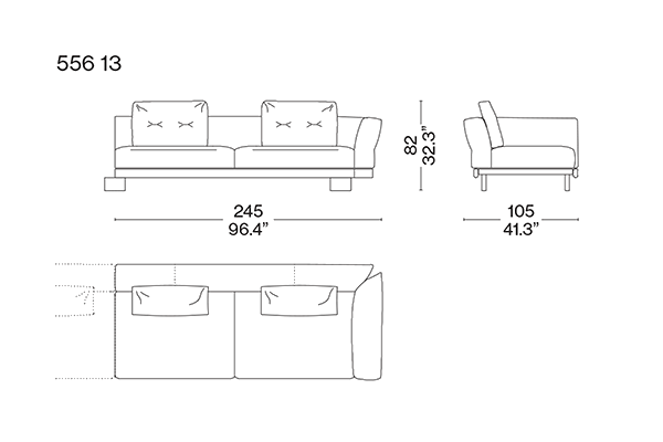 The Cassina Sengu Sofa is a seating implement that can accommodate any space without difficulty. Linear and modular options are available for this seating implement, making it an exemplary sofa system that will fit into any design scheme. The smallest version of the Sengu measures 105x230x82 cm, while the largest variant within the linear system measures 105x270x82 cm. The modular versions of this sofa system come in different layouts, components, and measurements: information on these products will depend on your chosen configuration and will be available upon request.