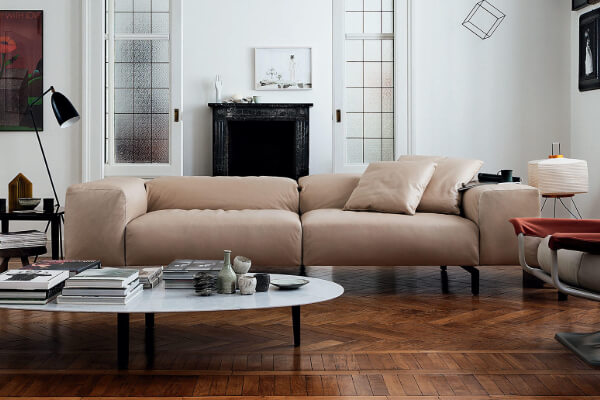 The Cassina Scighera Sofa can be as dignified or as playful as you want it to be. You may select your upholstery from either leather options or fabric selections. The leather versions can give the Cassina Scighera a more formal demeanour because of its elegant feel. Fabric selections are more applicable if you want your sofa system to have a more quirky side. An added touch of sophistication comes from grosgrain trim stitching which is available in four natural shades. All of these details combine to give you a version of the Scighera that will satisfy your discerning tastes.