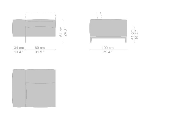 The Cassina Scighera Sofa's modular capabilities come into play when you want to populate a large area with a beautiful seating implement. The base unit for this sofa system measures 314x100x61 cm, but with numerous modular units available, you may add any number of components to your base unit. The modular nature of the Cassina Schighera allows you to select any number of additions to the base unit, depending on the size of the space that the sofa system will populate. For a more accurate estimation, size requirements will be available only upon request.