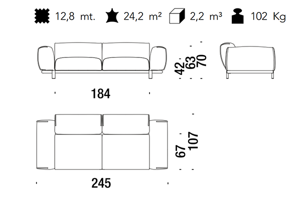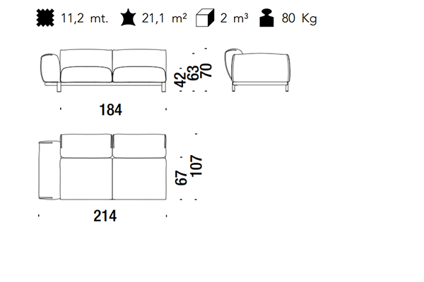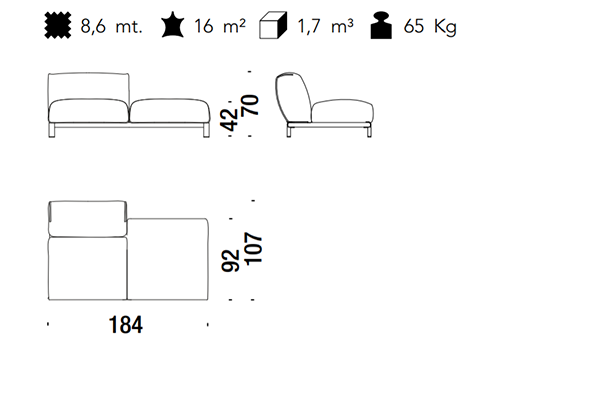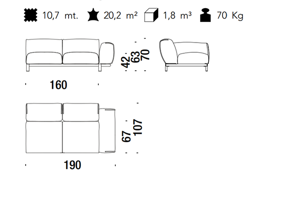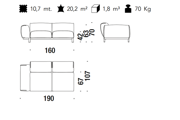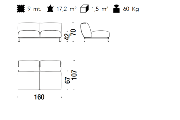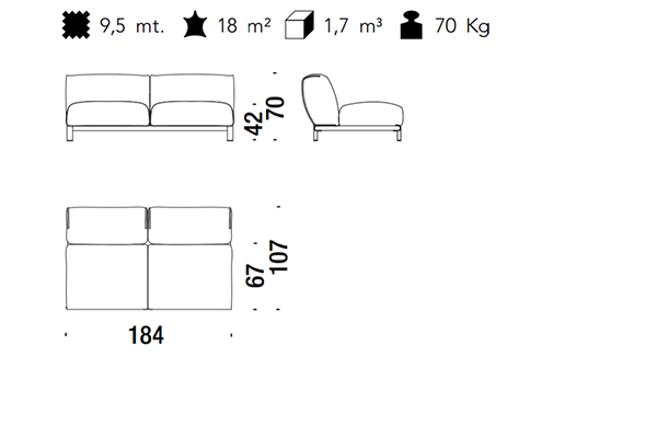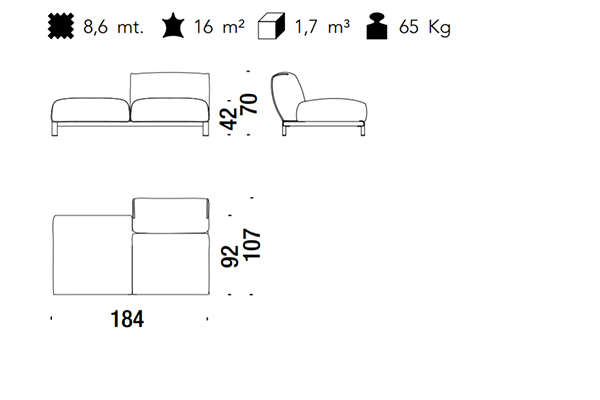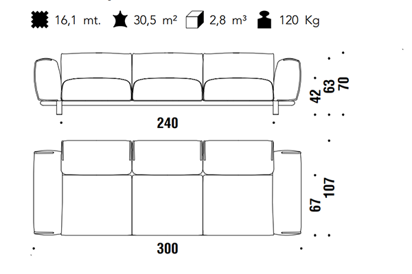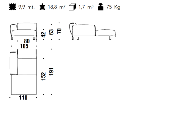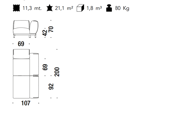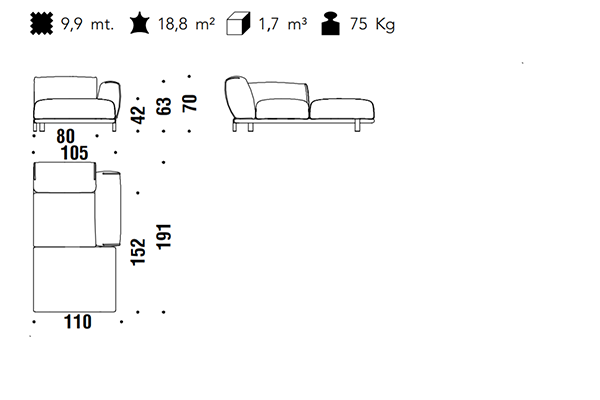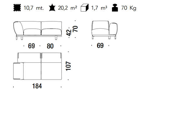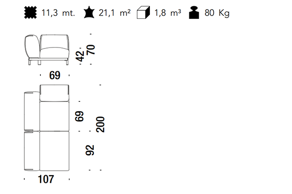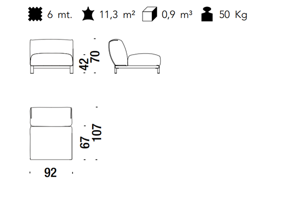The Moroso Bold Sofa comes in several sizes that can accommodate any location that you have in mind. The basic version of this seating implement comes in three sizes: 107x220x70 cm, 107x245x70 cm, and 107x300x70 cm. The Bold line also has a pouf in two sizes: 92z92z42 cm, and 83x105x42 cm. There are also modular variants of the Bold. The modular configurations are varied, and any information required for these configurations will be available upon request. This sofa system can easily occupy any space, regardless of an area's size, thanks to its massive form.