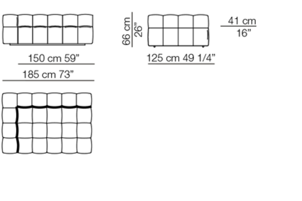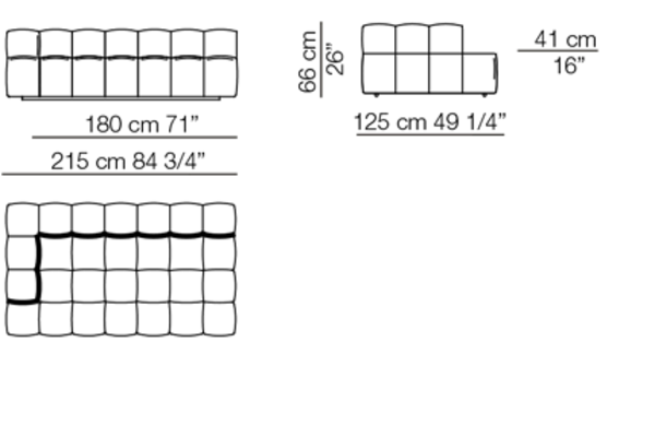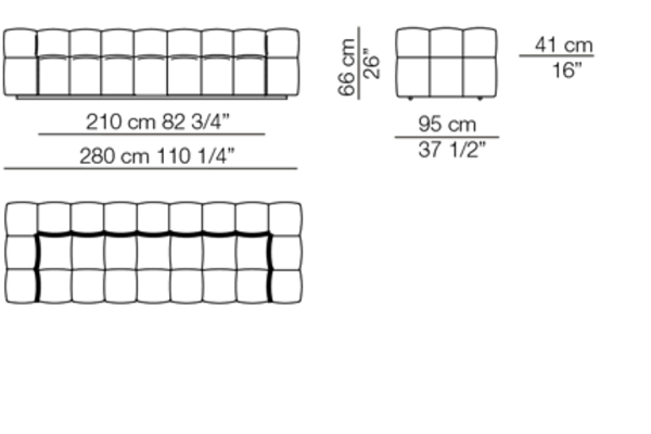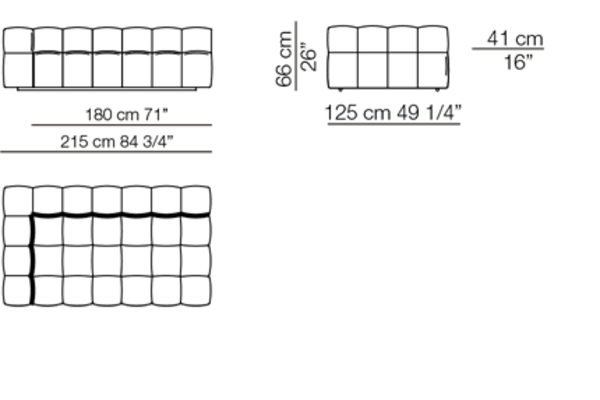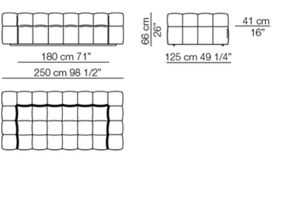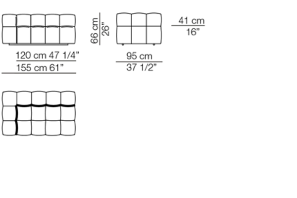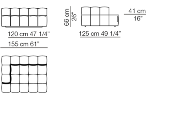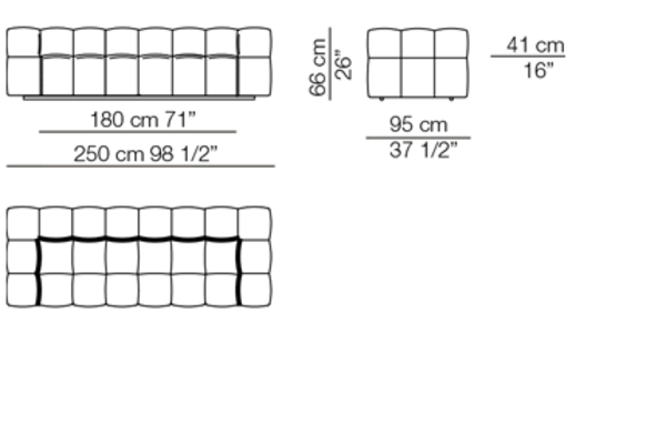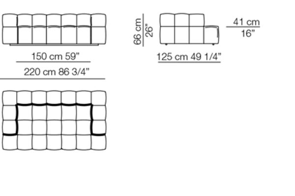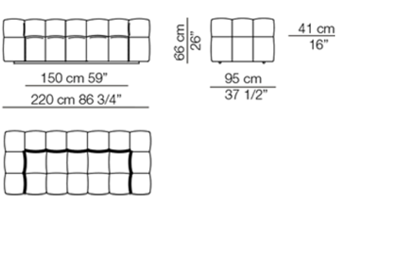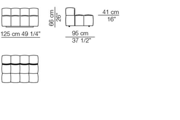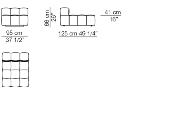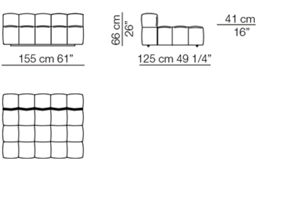The modular configurations available to the Strips sofa are numerous as you can personalize the Arflex Strips according to your taste. The basic model’s measurements are 220x125x66 cm, but your modular choices can create a version of the Strips sofa that is uniquely yours. In a sense, the Strips sofa system components are like building blocks, the assembly options are endless. The synergy between elements is the best feature of this product, it’s up to you to make everything come together.