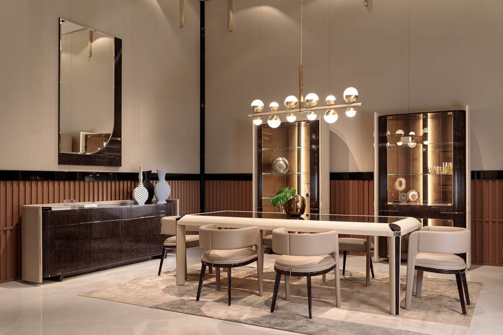 A space where the main activities of conviviality and meeting take place must be designed in the right style. A welcoming atmosphere and a design that best reveals one’s personality are an excellent starting point to create your own Italian style dining room. The set of furniture, materials and colors are then the main protagonists and must be able to best represent the most varied types of settings, from those with neutral nuances and minimal shapes to those with precious materials and refined and unique elements. We introduce a series of Italian dining room design inspirations, to help you imagine a new look for your home and to show you innovative solutions with products 100% made in Italy.