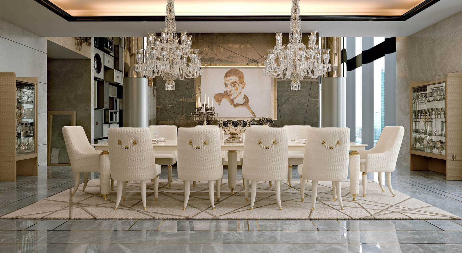 Enrich your dining experience with the finest high-end Italian dining room furniture pieces available. You won’t have to sacrifice quality for style, but simply benefit from the best craftsman and designers available in Italy. We’ve provided a variety of images to share with you in hopes of joining forces to elevate your dining room into an Italian oasis. Find your favorite ambience or brands, such as contemporary options from Molteni&C, Cassina, or B&B Italia. Luxury lovers, look no further than Fendi Casa or Bentley Home. If you are not sure where to start, discover your personal style with our Innovative Questionnaire.