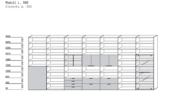 Porro's System has several combinations that can occupy any space that needs a storage system of its calibre. This product is fully customizable, configuring it according to your specifications. The Porro System Wall Unit's modular nature gives it an unlimited number of configurations that populates any area with relative ease. In this regard, any information about this product will only be available upon request. The System is an excellent storage system that can transform any wall into a functional area. This product can perform efficiently in any interior setting, whether domestic or commercial.