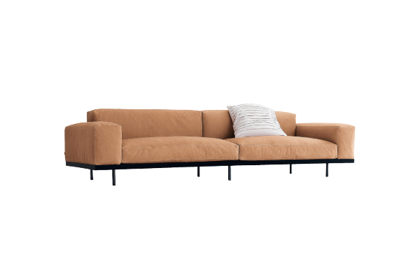 The last model we propose from Arflex sofas is Marenco, an element that stands out for its soft and cozy shapes. We have chosen a 245 cm wide sofa, upholstered in salmon pink velvet, while the cushions have black and white geometric textures. The selection of these finishes brings the sofa to a total price of 6.825 euros.