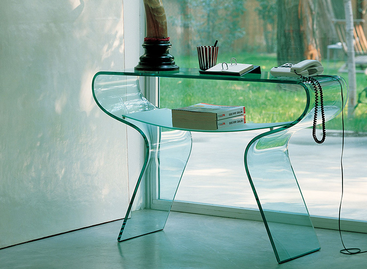 The Fiam Charlotte Console Table is a refined piece of furnishing that exudes a dainty sense of elegance not typically found in similar items. The lines present in its form tells of the craftsmanship instilled into its shape. It is the same artisanal quality that Fiam integrates into every product that they produce. The Fiam Charlotte displays these qualities without restraint, and this is evident from the sinuous curves the charlotte possesses. This kind of elegance can only come from certain materials, and Fiam has mastered the use of glass, enabling us to have products like the Charlotte Console Table.