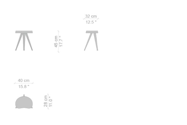 Stools like the Mexique Stool were designed to be compact. The shape of its "en forme libre" seating, with its rounded form, was intended to be minimal, therefore occupying as little space as possible. This feature then facilitates the motion between the armchair, bed, and desk, allowing for unrestrained movement within the students' rooms. The stool's entirety allows for free movement within any location because of the Mexique's small footprint. The legs for this stool are composed of triangular sectioned folded sheet metal, giving The Cassina Mexique Stool a more rigid stance.