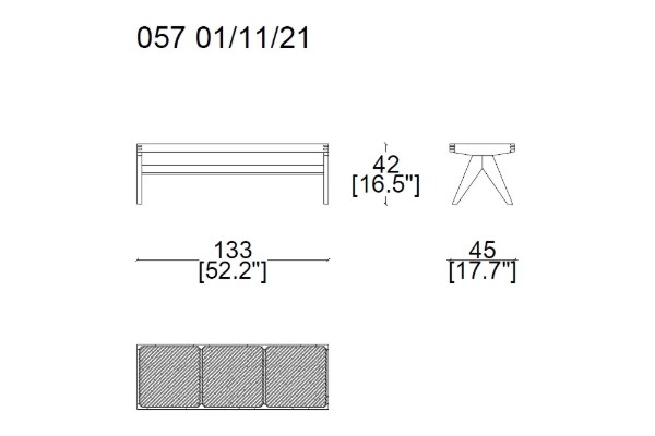 The Cassina Civil Bench is a bench that can provide comfortable seating to three people. Measuring in at 133x45x42 cm, Its size allows it to be an alternative seating option for rectangular eight-seater dining tables. They can also be a substitute for sofas in the living room, should you be inclined to use them in that area. The cushions have two measurements as well; 45x45 cm or 133x45 cm. All things considered, any combination of elements will result in a version of the Cassina Civil Bench that will be suited to your requirements.