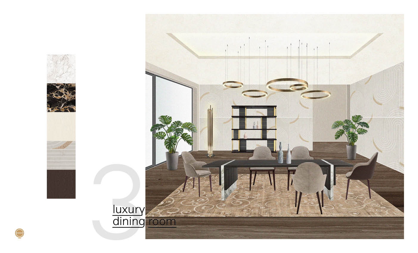 Discover together with us the secrets of a perfect Italian dining room design. From dining room tables to designer chairs, from majestic chandeliers to refined finishes. Our team of interior designers has created moodboards and compositions in different styles, generating unique atmospheres and different looks.
