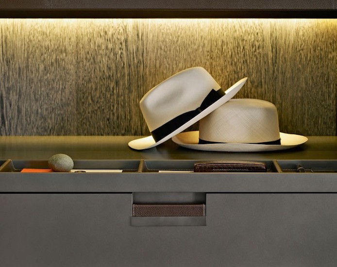 Among the finishes available for Backstage B&B Italia wardrobe, it is also possible to choose from a wide range of leathers in different colours for the details of the internal components and handles, reserving specific treatments for these materials so that they maintain lasting aesthetic qualities.