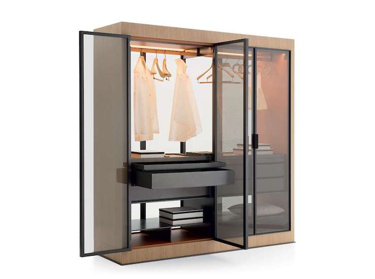 The Maxalto company has always set as its goal the use of precious and durable materials. The result is a wardrobe with a minimal and sophisticated look, great functional capabilities and extreme simplicity. In addition, the light that illuminates the interior of the container becomes a refined vintage detail taken from the display cabinets of the fifties.