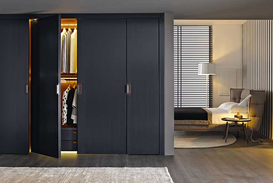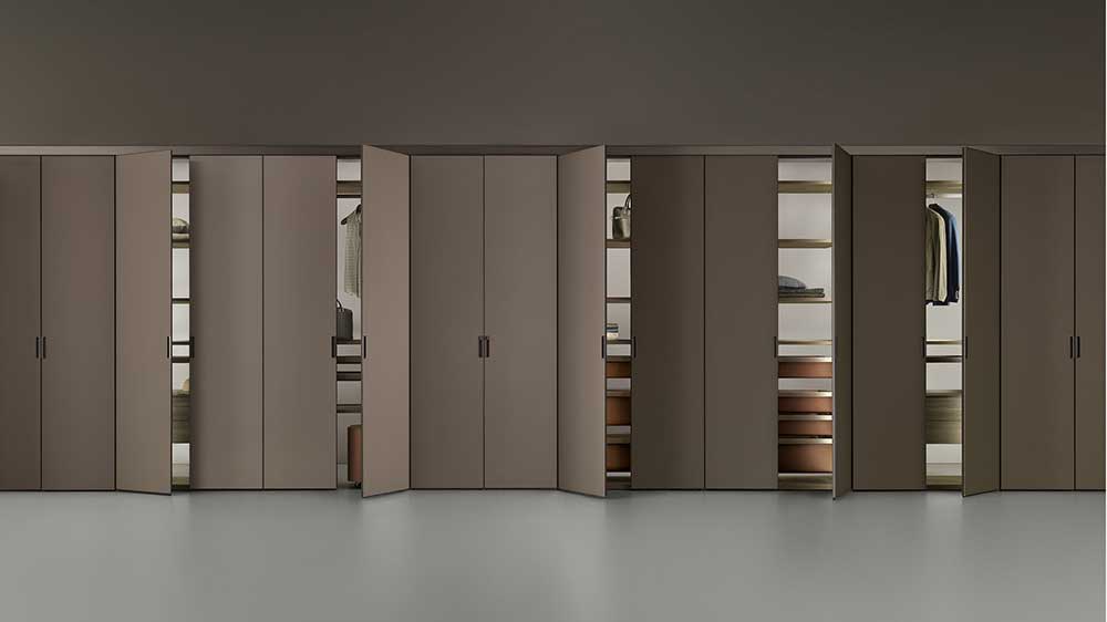 When talking about designer wardrobe accessories, one has to think about the elements that determine their quality and contribute to the design of the luxury wardrobe. One of these elements is the opening system. The Backstage collection of B&B Italia, for example, is equipped with full-height doors with a simultaneous opening system. A mechanism patented by B&B Italia that allows the doors to rotate. This offers greater accessibility to internal compartments and reduced bulk when the door is open.