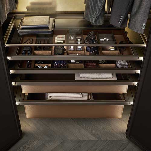 Solutions to customize Luxury Wardrobes with Accessories and air purifier systems. Made in Italy proposals for Luxury Wardrobe Design.