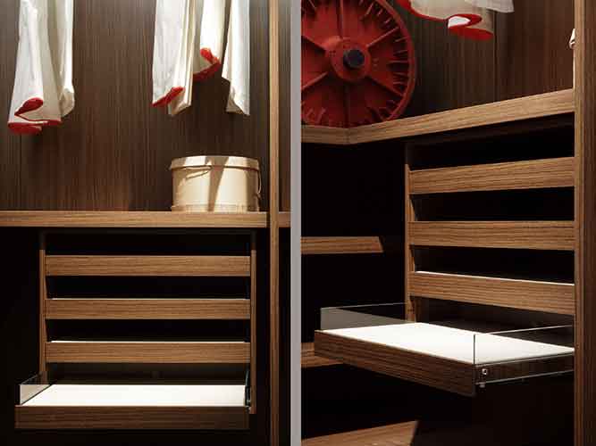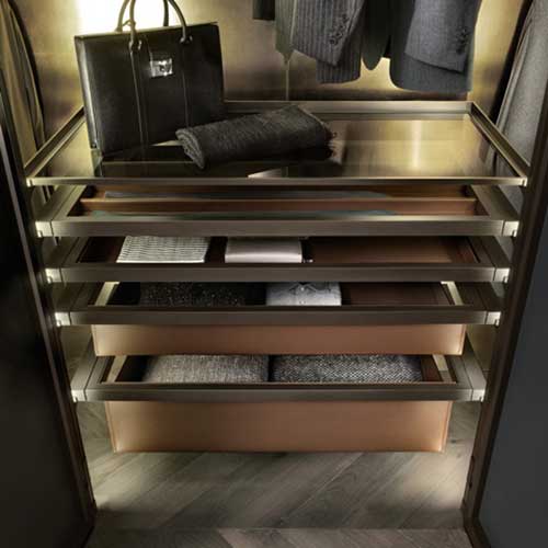 In the planning of a luxury wardrobe both practicality and design have the same importance, because it has to be configured according to specified requirements. Porro furniture, one of the leading Italian companies in the production of luxury wardrobes, offers in its catalogues a wide variety of accessories, which configure the wardrobe or walk-in closet.
