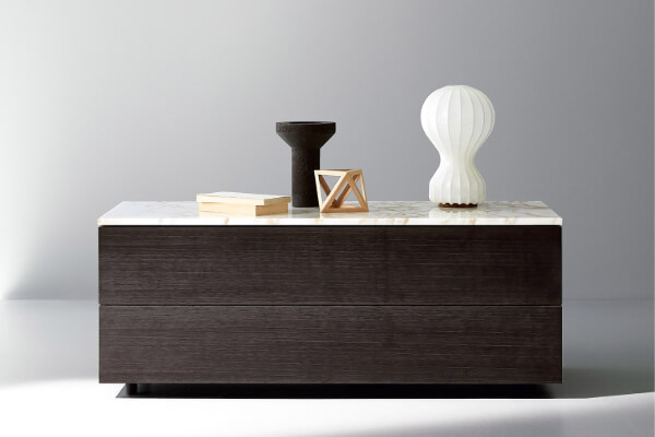 The Porro Hub fascinates any viewer able to see its profile as it highlights an area's appearance with its splendid shape. It features elegant wooden structures that coincide with the different top materials. The front panels come in either wood with folding mechanisms or silk-screened glass with leather or marble embellishments. The setup of these compartments and drawers give the Hub its distinct look. These features enable the Hub to efficiently functions wherever it is located, giving you more reasons to appreciate this beautiful nightstand.